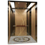 Лифт пассажирский/грузовой NBSL, отделка кабины из черненой нержавеющей стали, зеркальные панели, металлические поручни, светодиодное освещение, гравировка.